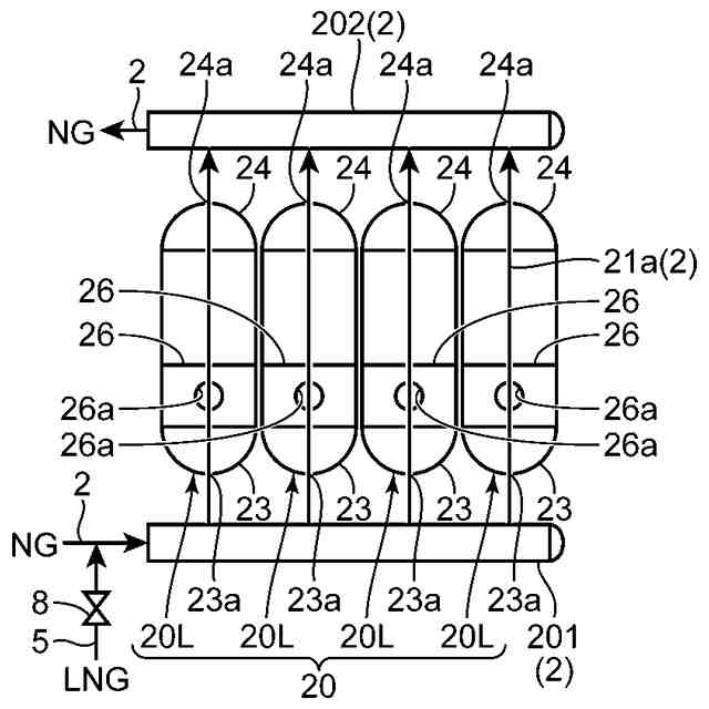 前記第2熱交換器は、前記気化ガスの入口となるガス入口部を有し、