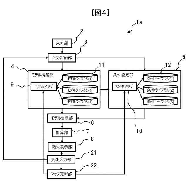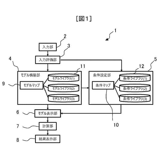 ユーザが入力する情報と、モデルの要素および/または計算条件との関係を重み係数により示す重み係数データをライブラリとして格納し、