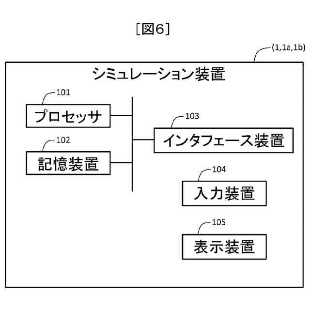 本発明の第1の態様によれば、下記のシミュレーション装置が提供される。このシミュレーション装置は、モデルを構築し、前記モデルを用いてシミュレーションを行う装置である。シミュレーション装置は、プロセッサと、記憶装置と、を備える。記憶装置は、ユーザが入力する情報と、モデルの要素および/または計算条件との関係を重み係数により示す重み係数データをライブラリとして格納する。プロセッサは、ユーザの入力により取得した情報を評価し、記憶装置に格納された重み係数データを用いて、シミュレーションに用いるモデルを構築する。プロセッサは、構築したモデルに関する情報を示すデータを出力する。また、プロセッサは、構築したモデルに基づくシミュレーションを行い、シミュレーションの結果を示すデータを出力する。