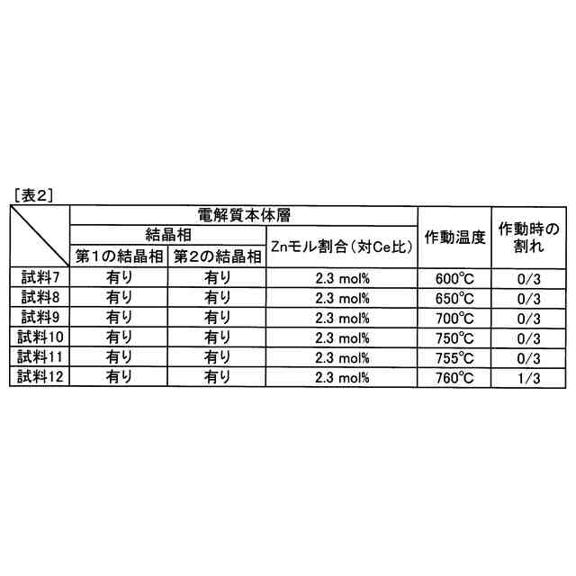 従来技術には、次の課題がある。特許文献1において、ペロブスカイト型結晶構造を有する酸化物層中のCeは4価であり、このCe原子は高温・還元雰囲気にさらされると3価に変化する。そのため、特許文献1の技術では、固体電解質層の還元膨張抑制効果が十分ではなく、作動時のクラック発生を抑制することが困難である。また、本材料は、プロトン導電体としても知られており、水和反応によって化学膨張することが知られている。そのため、H
