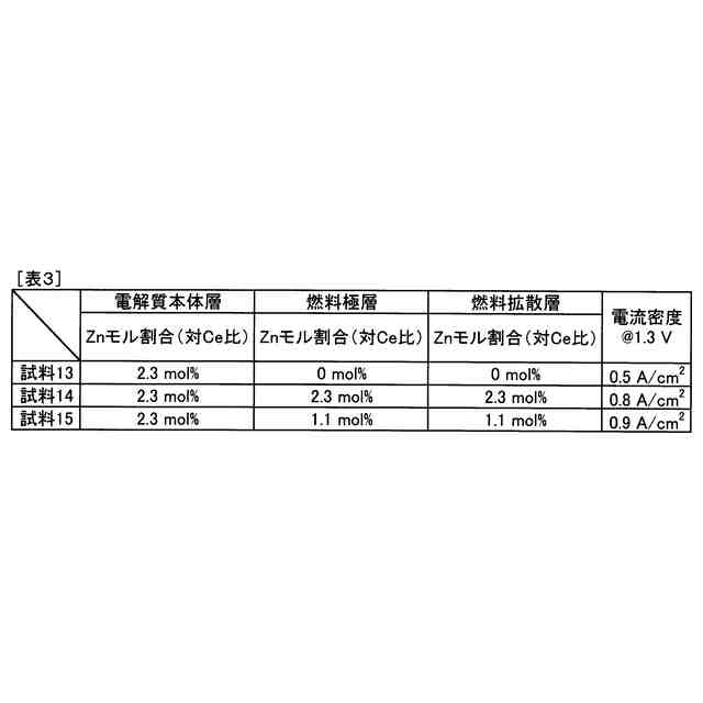 前記燃料拡散層に含まれる前記複合酸化物相における前記第1の結晶相に含まれるCeのモル数に対するZnのモル数の割合は、前記電解質本体層に含まれる前記複合酸化物相における前記第1の結晶相に含まれるCeのモル数に対するZnのモル数の割合よりも少ない、