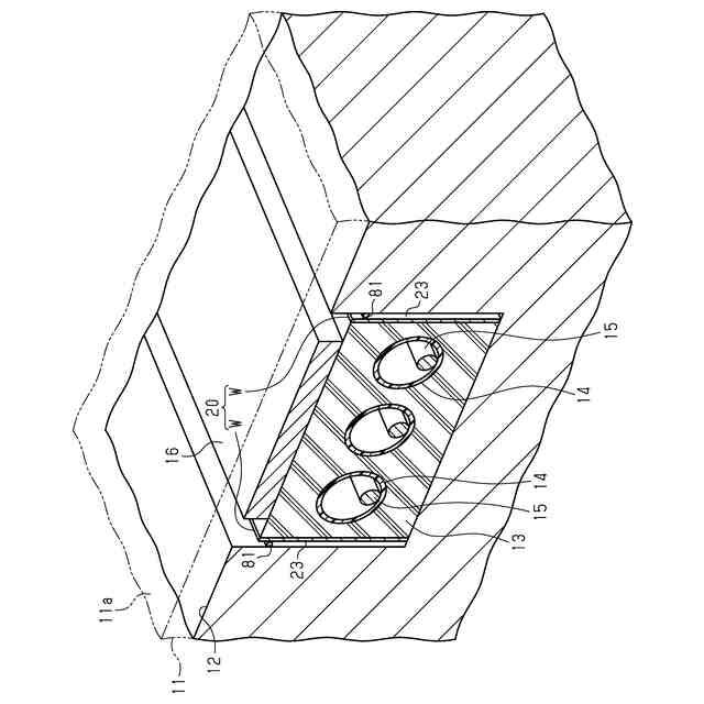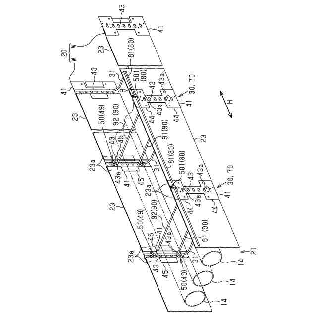 例えば、道路には、路面を形成するアスファルト舗装面より下方に、管材が敷設されている(例えば、特許文献1参照)。管材には、例えば、送電ケーブルや通信ケーブル等の配線が挿通されるとともに、管材は、配線を保護する。管材は、アスファルト舗装面より下方に形成された防護コンクリートに埋設されている。そして、防護コンクリートは、道路上を走行する車両の荷重による管材の潰れを防止している。