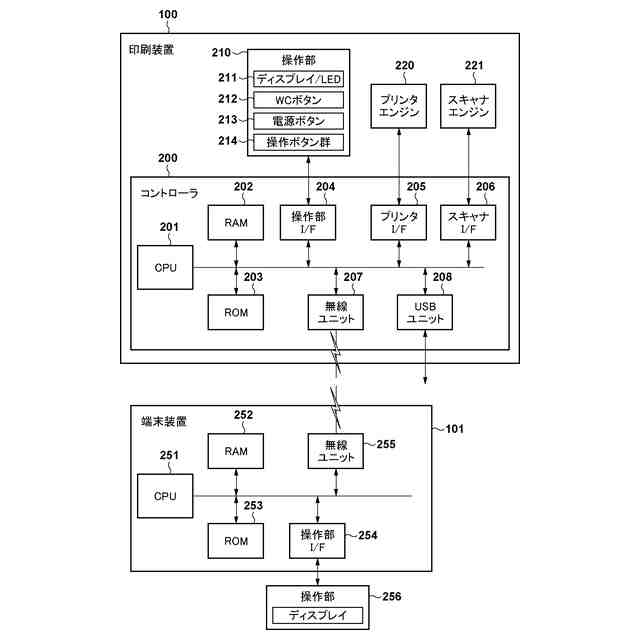 図1(a)及び図1(b)は、本実施形態における通信システムのネットワーク構成の一例を示す図である。本実施形態において例えば、端末装置が端末装置101であり、通信装置が印刷装置100である。図1(a)は、印刷装置100が、AP102と接続するために必要な接続情報(無線プロファイル)を端末装置101から受信して接続設定するネットワークセットアップを実施する際の構成を示している。