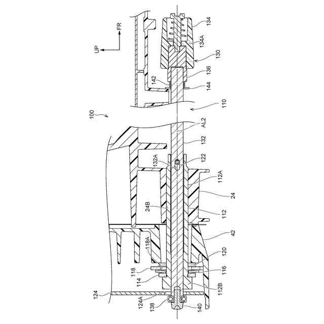 所定軸線に沿って延在され、前記操作部への第1操作によって所定軸線に沿って移動することで前記支持部を前記ベースに固定する固定状態又は前記支持部の前記ベースへの固定を解除した固定解除状態に切替わる固定部と、
