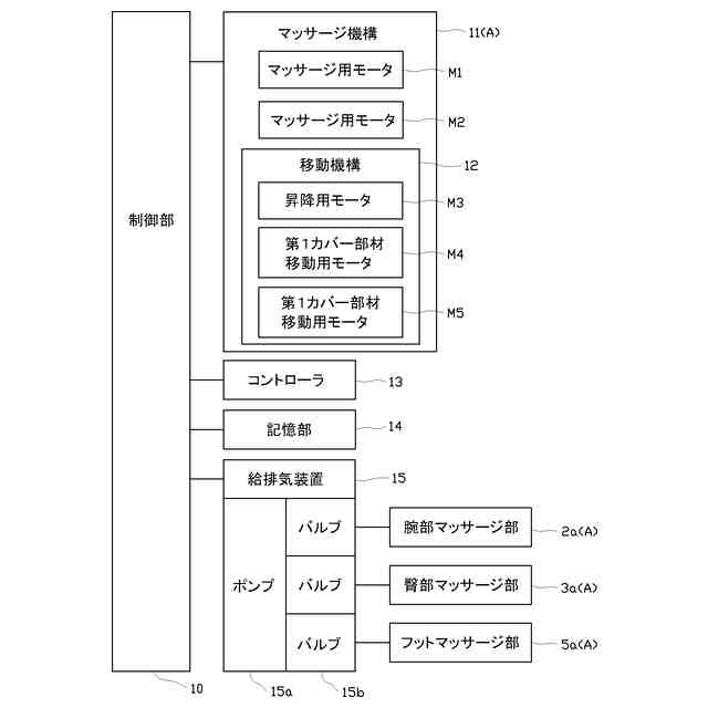 また、前記制御部は、前記移動機構の駆動を更に制御し、前記マッサージ機構を駆動させて使用者を施療させるとともに前記移動機構を駆動させて前記マッサージ機構を使用者の施療部位に沿って移動させることが好ましい。