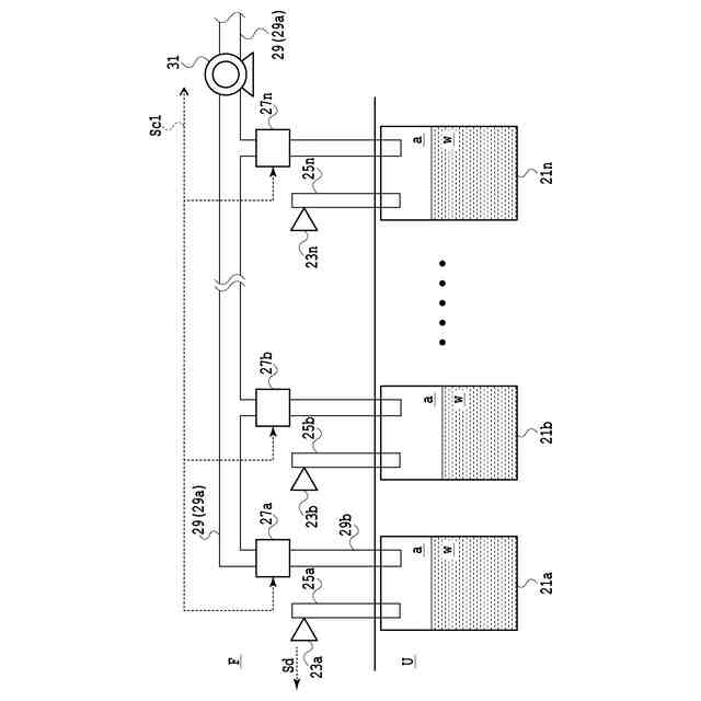 生活若しくは耕作を除く事業に起因し、もしくは付随する廃水(以下、「汚水」と記す)は、汚水管、または雨水と共に下水管に流れ込み、例えば下水処理場に到達する。汚水は、下水処理場において浄化処理され、処理水として河川や海に放流される。下水処理場は、下水を沈殿させてゴミ等を取り除く沈殿池と、汚水を空気に曝し(曝気)、空気を供給することにより、微生物による汚染物の分解を促すエアレーションタンクと、を有している。エアレーションタンク、あるいは沈殿槽等が発生する臭気はダクトを介して脱臭ファンにより吸気され、必要に応じて脱臭装置に導かれる等の処理がされる。