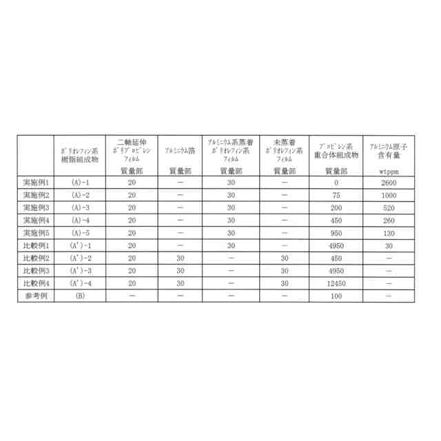 ここで、フィルム(B)は、ポリオレフィン系樹脂を含むポリオレフィン系樹脂組成物(B)を、前記(1)と同一のプレス条件で成形することによって得られるフィルムであり、前記ポリオレフィン系樹脂組成物(B)は、アルミニウム原子を含まない。