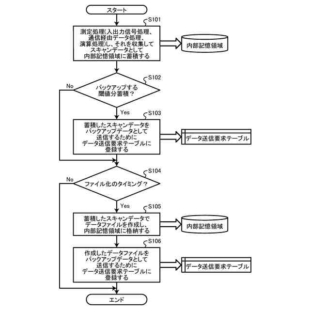 このような記録計では、停電や故障、デジタルデータの破損などのリスクに備えて記録データをバックアップするバックアップ機能が提供される。例えば、記録計は、入出力や通信、演算などのチャネルを介して収集される測定データを蓄積してデータファイルを作成し、その複製データをサーバ装置に送信してバックアップさせる。
