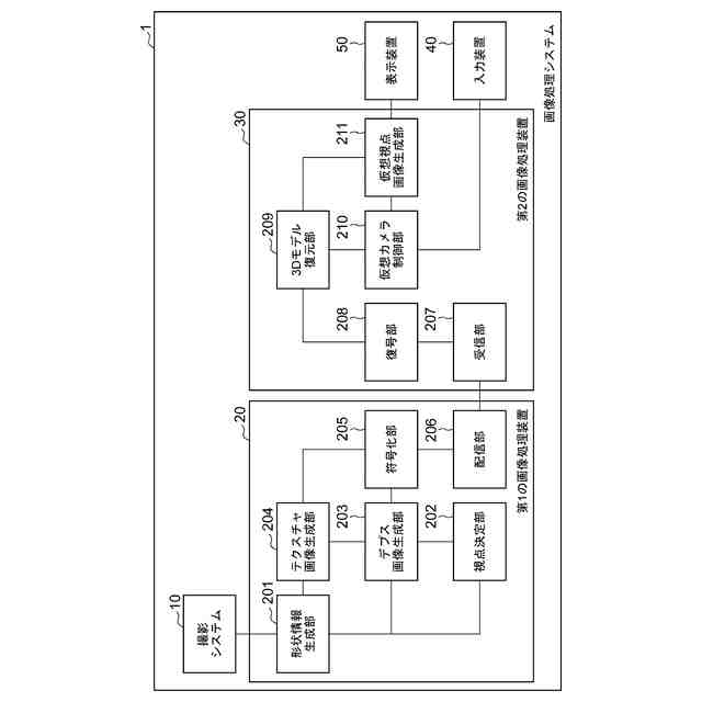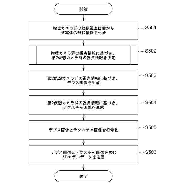 3Dモデルデータを圧縮及び配信する技術において、配信側のデバイスでは、3Dモデルを取り囲むように複数の仮想カメラ(仮想カメラ群)を配置し、複数の仮想カメラのデプス画像とテクスチャ画像をそれぞれ生成する。そして、生成したデプス画像とテクスチャ画像を圧縮し、圧縮したデプス画像とテクスチャ画像と複数の仮想カメラの位置及び姿勢を示す情報とをユーザに配信する方法がある。受信側のデバイスでは、圧縮されたデプス画像とテクスチャ画像を復号し、復号したデプス画像とテクスチャ画像と複数の仮想カメラの位置及び姿勢を示す情報とに基づき、3Dモデルを再構成する。