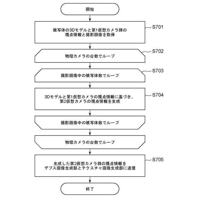 特許文献1では、デプス画像の圧縮率の向上を目的に、フレーム間のデプス画像上の主要なオブジェクトの位置の変動が小さくなるように、仮想カメラ群の視点を決定する方法が記載されている。デプス画像を符号化した際に符号化ストリームに含められる動きベクトルが小さくなることにより、デプス画像の圧縮率の向上が期待される。