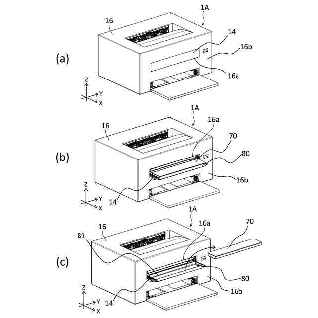 実施例1に係る画像形成装置の斜視図(a~c)。