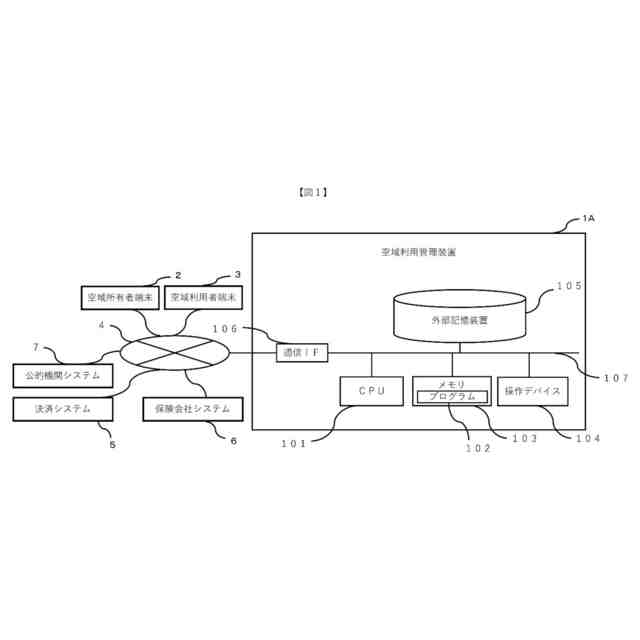 また、本発明の他の実施形態は、空域利用のマッチングを行う空域利用管理システムであって、空中権で空域を所有する所有者の所有者端末と、無人移動体で空域を利用する利用者の利用者端末と、空域利用のマッチングを行う装置と、保険手続きを行う保険会社システムと、を備え、前記所有者端末、前記利用者端末、前記装置および前記保険会社システムはネットワークを介して通信可能に接続され、前記装置は、メモリを有しており、前記所有者端末から保険手続きを含む利用許可条件を付けて空域利用を許可する空域を前記メモリに記憶しており、前記利用者端末から前記メモリに記憶された空域に対する利用のリクエストを受け付けて、前記利用者端末の利用者が保険手続きで前記利用許可条件を満たさない場合に前記保険会社システムに接続して前記利用者の保険手続きをサポートして、空域利用のマッチングを実行することを特徴とする。
