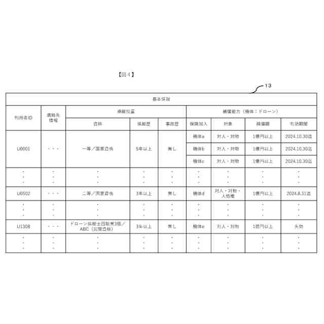 上述したように、空域所有者と空域利用者とのマッチングにおいて、空域利用者が希望する空域や飛行ルートの選定に空域利用者の操縦技量や事故等の補償能力といった情報が紐付けられていないことから、空域所有者を保護する観点でのマッチングが期待されている。