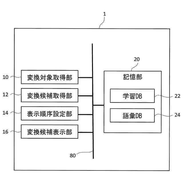 【解決手段】ユーザが変換対象を入力したときに(ステップS100)、当該変換対象の入力に用いたアプリケーションに適した変換候補を表示することができる。そして、変換候補が複数ある場合には、変換対象が入力された時刻および場所の両方を考慮した表示順序を設定し(ステップS102~S110)、当該表示順序で変換候補を表示するため(ステップS112)、ユーザが所望する変換結果により適した状態で、変換候補を表示することができる。