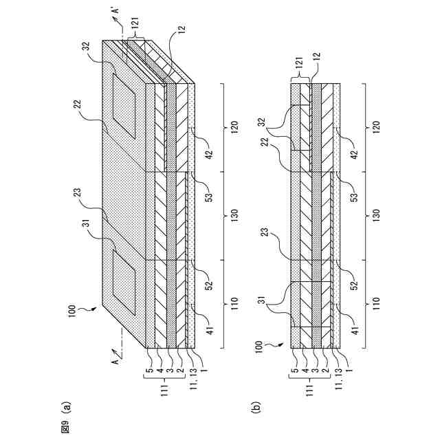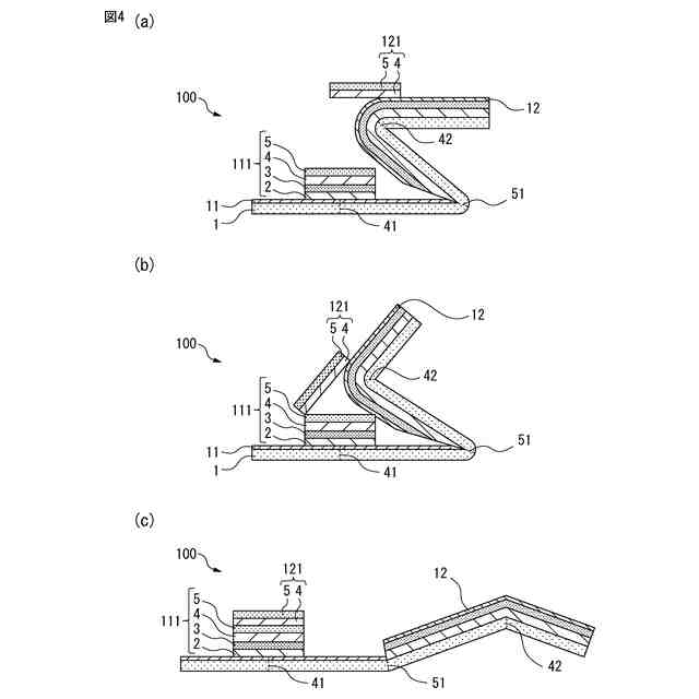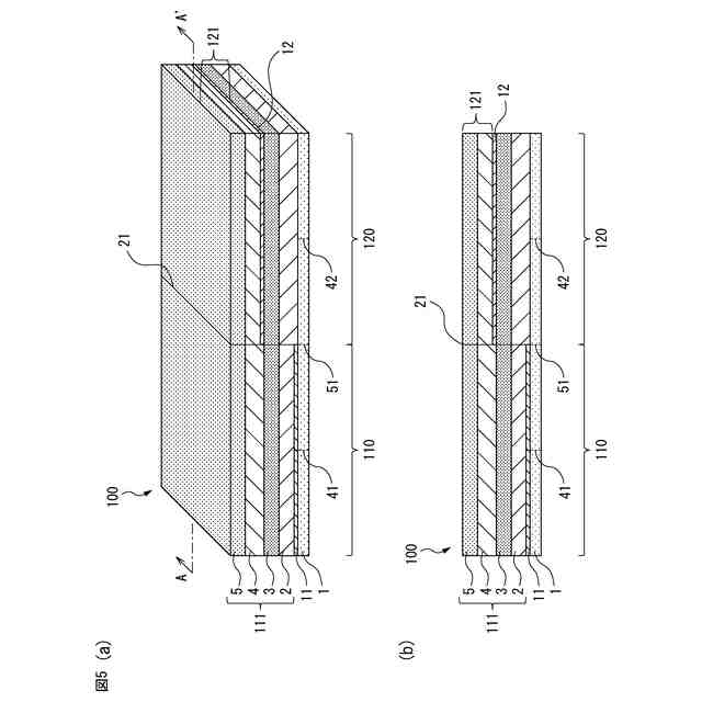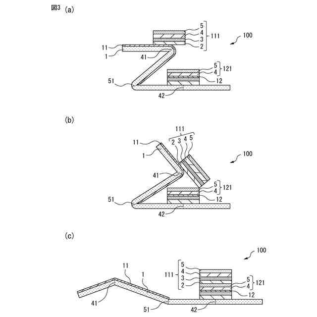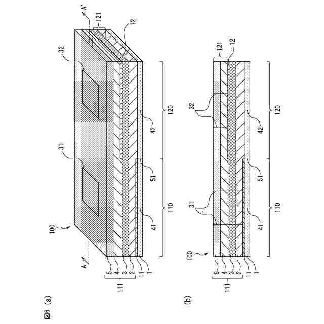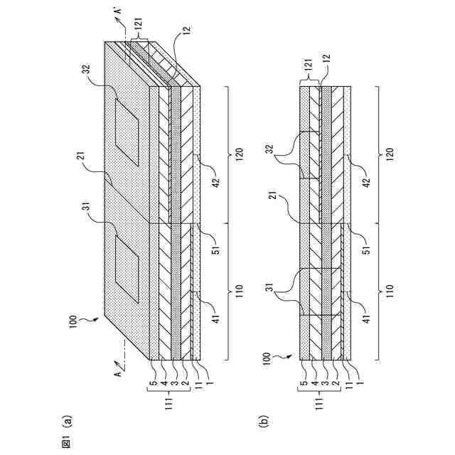 前記貼合わせ領域は、前記第1及び第2の領域から延在している前記基材層、前記第1の粘着層、前記不透明層、前記第2の粘着層、及び前記透明層をこの順で有する、