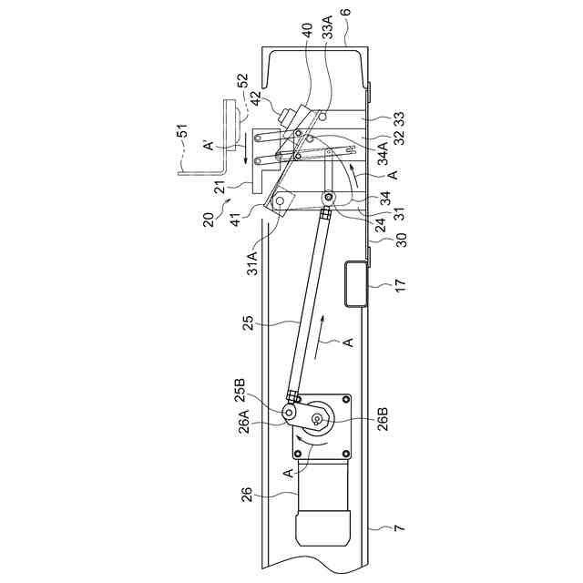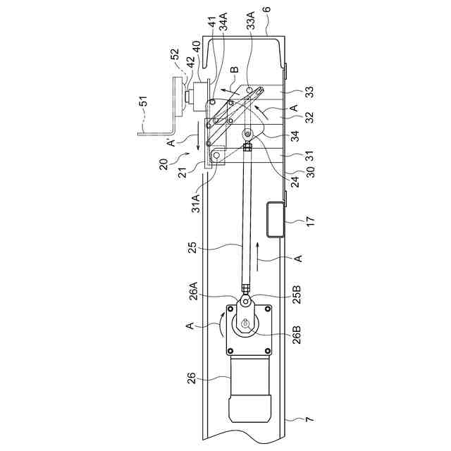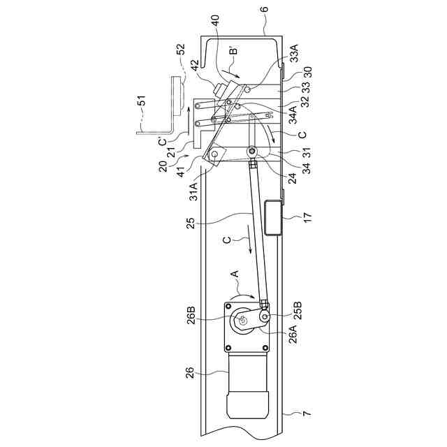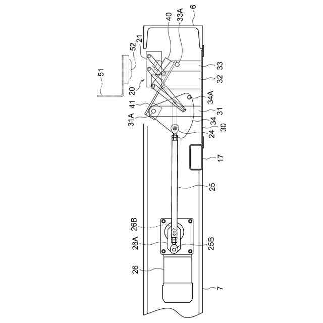 前記揺動体の揺動端側に接続される第1平行リンク機構と、前記第1平行リンク機構に接続され、前記覆体を前記覆う位置と前記開放位置との間を移動させる第2平行リンク機構と、
