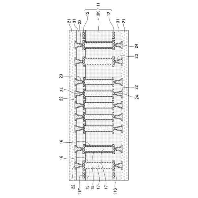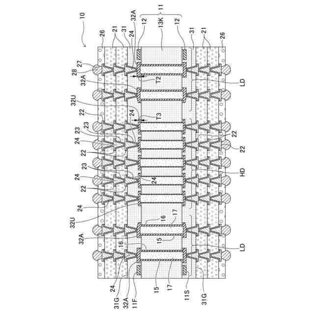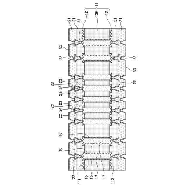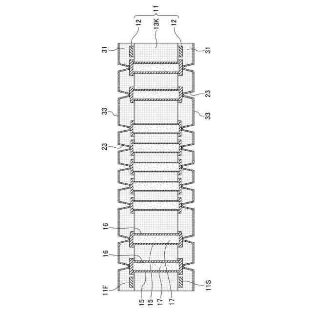 前記厚肉導体層の厚みと、前記薄肉導体層の厚みと、の差が5μm以上である。
