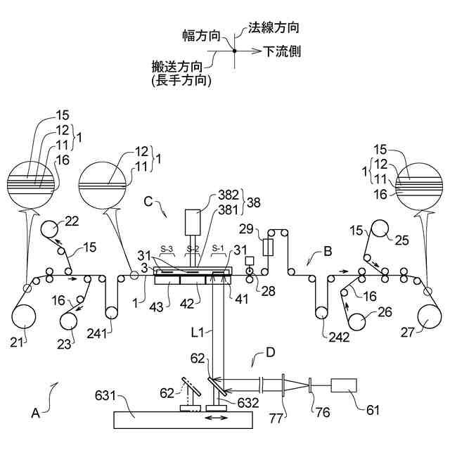 前記搬送部が、長尺帯状の感光層を長手方向に所定長さ分搬送して前記感光層の搬送を停止し、
