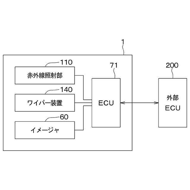 前記レンズワイパーは、ワイパーゴムおよびワイパーブレードを有するワイパー部(145c)を含み、前記ワイパー部は、前記ワイパー装置の駆動を停止している待機状態において、前記レンズの露出面上に位置し、前記レンズへの入光を部分的に阻害している。