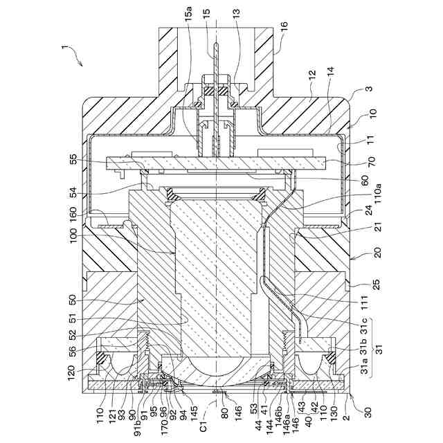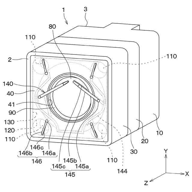 前記収容容器内には前記モータが配置される収容空間(180)と、前記通電用配線が配置される配線通路(111)とが形成されていると共に、前記収容空間と前記配線通路が繋がっている、請求項1または2に記載の撮像装置。