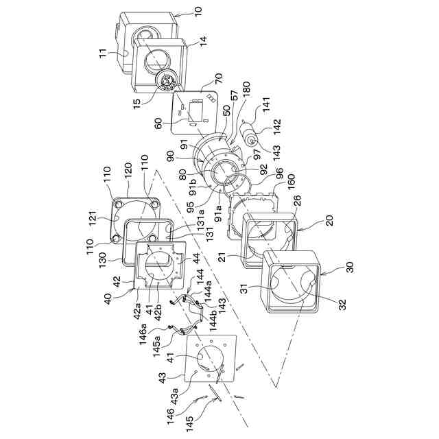 前記イメージャ基板から前記レンズ側に引き出された通電用配線(110a)にて通電が行われる補機(110)を備え、