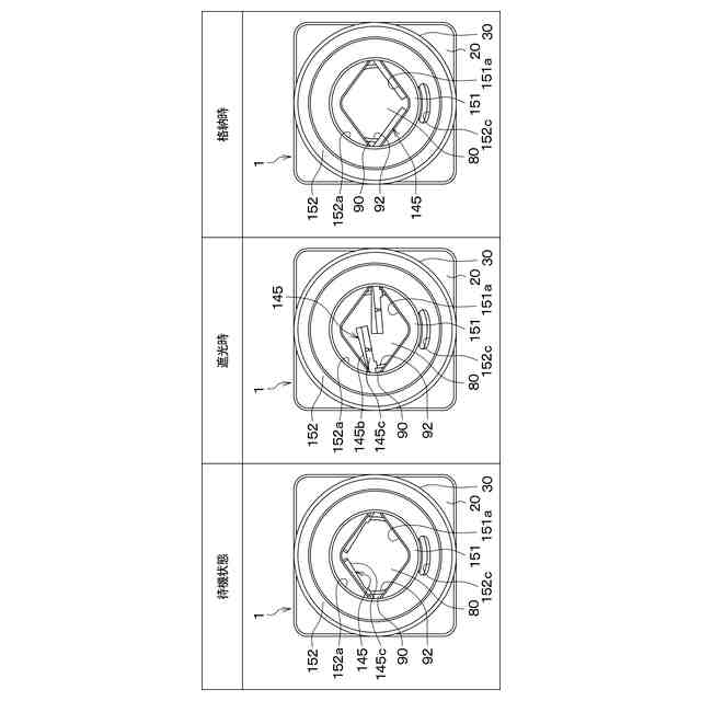 待機状態、遮光時、格納時のサンバイザーの様子を示した図である。