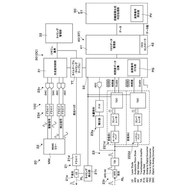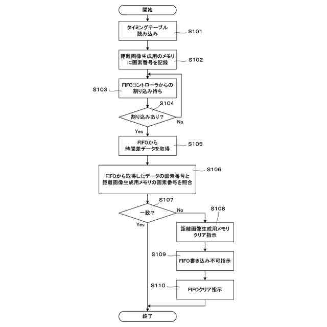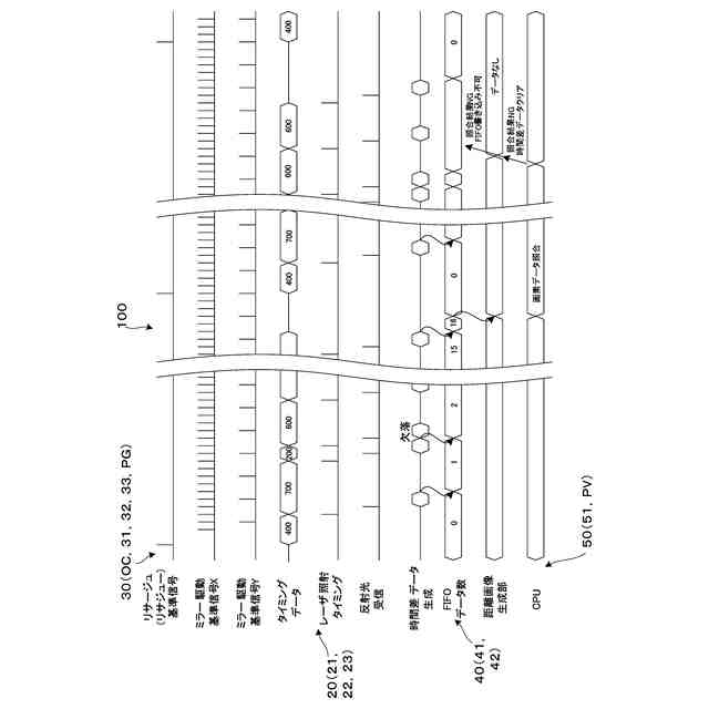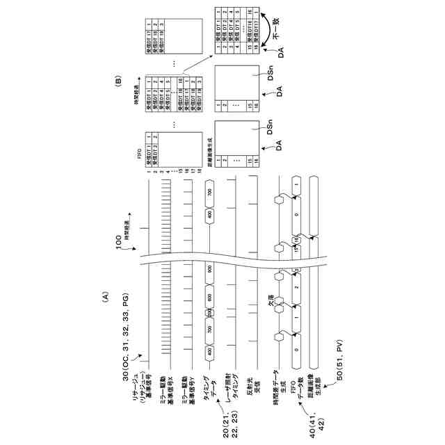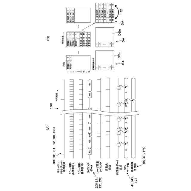 本発明の別の側面では、画素番号照合部において、測距異常ありと判定された場合、新たな1フレーム分の光走査開始までに取得した受信データを消去する。この場合、異常な状態にある受信データの使用を回避するとともに、フレーム単位で更新された受信データの取得開始が可能となる。