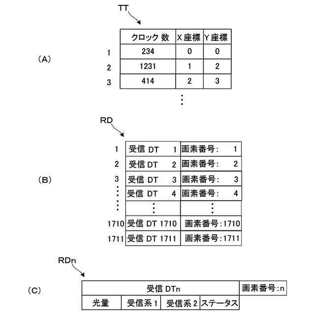 本発明のさらに別の側面では、画素番号付与部において画素番号を付与された受信データを、逐次格納する受信データ格納部を備え、受信データ格納部は、先入れ先出し方式で、1フレーム分ごとに受信データを画素番号照合部に出力する。この場合、異常な状態にある受信データの使用を回避するとともに、フレーム単位で更新された受信データの取得開始が可能となる。