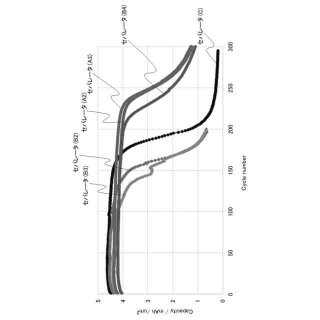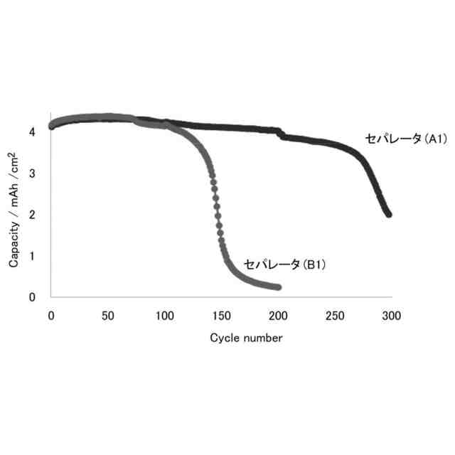しかし、ガラス繊維不織布のように孔径が比較的大きいセパレータを用いた場合、電極上にリチウムデンドライトが発生し成長しやすい。リチウム二次電池にガラス繊維不織布を適用した場合、負極上でのリチウムデンドライトの発生と成長は抑制しがたく、サイクル特性の低下が顕著であり、また電池が短絡する危険性が高まる。