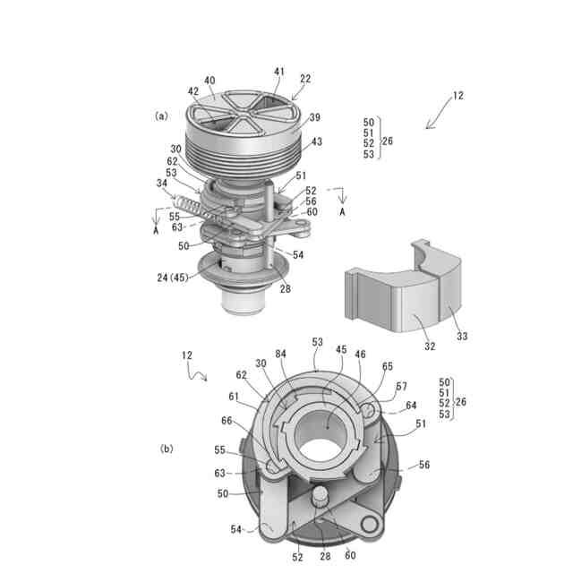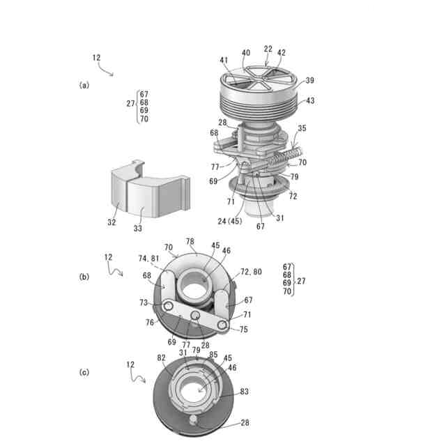 前記第1ラチェットは、前記第1押圧部が押圧され、前記第1リンクが動作した場合に、前記第1リンクと連動して回転し、且つ、前記弁体は、第1方向に回転することにより前記位相が変化し、