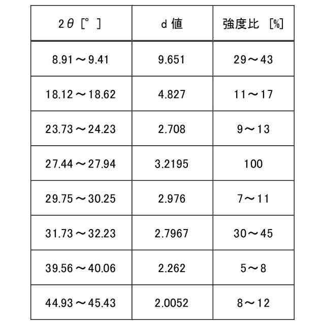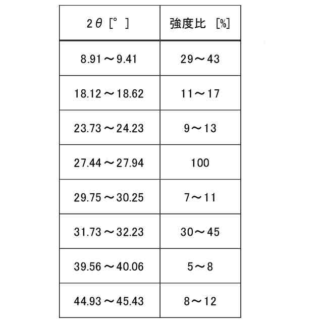2θ=8.91~9.41°、18.12~18.62°、23.73~24.23°、27.44~27.94°、29.75~30.25°、31.73~32.23°、39.56~40.06°、44.93~45.43°