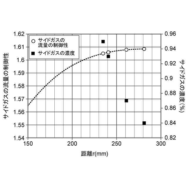 複数の第2のガス孔の配置の一例を示す平面図である。