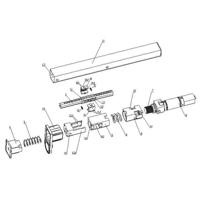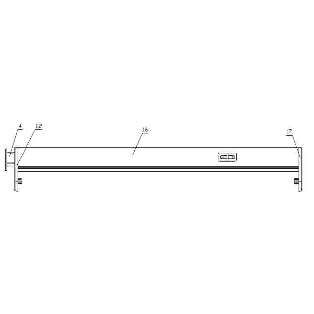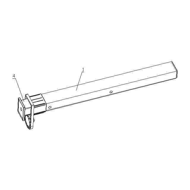 また、前記伸縮調整モジュールは、突っ張り棒と、突っ張り用ブロックと、第1バネとを備え、前記締付モジュールはスクリューロッドと、第1スライダと、第2スライダと、締め付け組立体とを備え、前記突っ張り棒は外方から内方に向かって順に、突っ張り用ブロック、第1バネ、エンドカバー、制限部材、第2スライダ、第1スライダを通過し、前記スクリューロッドは電動駆動モジュールの動力出力端に動力伝達可能に連結され、前記第1スライダはスクリューロッドに螺合され、前記締め付け組立体は第2スライダ内に取り付けられ突っ張り棒を保持又は離脱するために用いられ、前記ストッパ部は突っ張り棒に一体成形され、自然な状態において、前記第1バネは両端に向けて押し付け、前記第1バネの一端は突っ張り用ブロックの内端面に当接し、他端はエンドカバーの内端面に当接し、前記ストッパ部は制限部材に当接する。