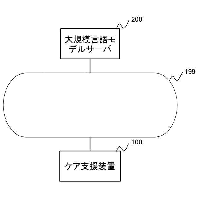 〔発明1〕 上記目的を達成するために、発明1のケア支援システムは、ケア対象者に対する実施事項を含み、前記実施事項を実施するスケジュールを生成する要求を含むリクエストを大規模言語モデルに入力する入力手段と、前記リクエストに対して前記大規模言語モデルから出力される情報を取得する取得手段とを備える。