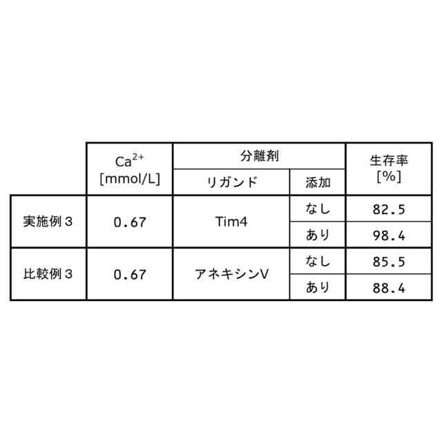 培養液中に含まれる真核細胞の生存率を高める別の方法として、当該培養液中に含まれる死細胞を選択的に分離除去する方法があげられる。前記方法の一例として、特許文献1には、デキストランが死細胞により強く結合する性質を利用し、細胞集団から死細胞を分離除去する方法が開示されている。しかしながらデキストランは生細胞にも結合するため、死細胞だけでなく生細胞も同時に除去してしまうという課題があった。死細胞をより選択的に除去可能な方法として、特許文献2には、アネキシンVが、死細胞の表面に露出するリン脂質であるホスファチジルセリンに、カルシウムイオン依存的に結合する性質を利用して、フローサイトメトリーにより死細胞を分離する方法が開示されている。