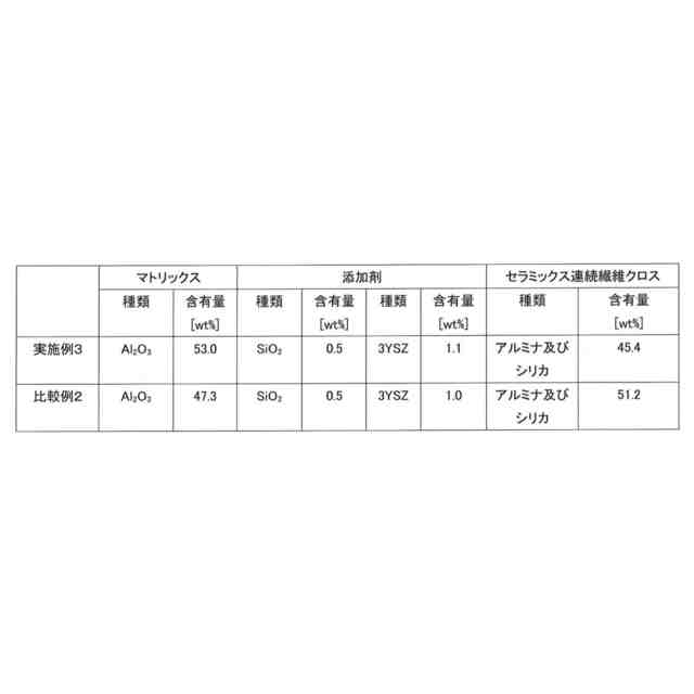 [4] 前記セラミックス連続繊維クロスが、アルミナ、ムライト、アルミナ及びムライト、並びに、アルミナ及びシリカの群から選ばれる1種以上のセラミックス連続繊維からなるセラミックス連続繊維クロスである、上記[1]乃至[3]のいずれかひとつに記載のセラミックスマトリックス複合材料。