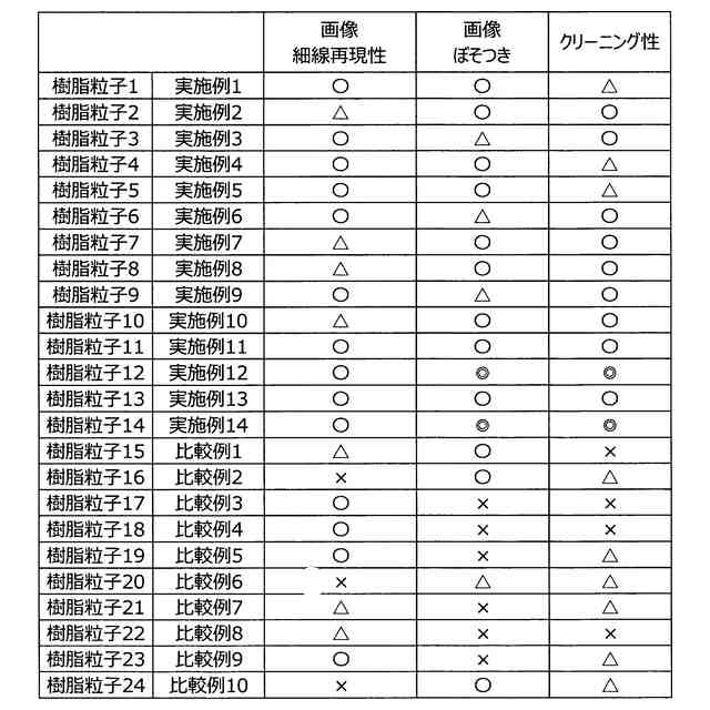 本発明により、細線の再現性が良好で、画像のぼそつきがない高画質な画像を提供するとともに、樹脂粒子のすり抜けが起こりにくく長期に渡る良好なクリーニング性の維持が可能な樹脂粒子を提供することが可能となる。