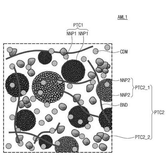 下記の化学式2の化合物を含む第2粒子と、を含み、