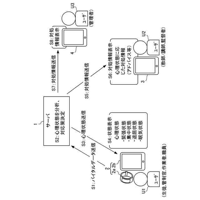 この技術は、ユーザの脈拍データから精神健康度を判定し、その結果をメール等で管理者に通知するものであるため、精神健康度に基づいた事後のフィードバックは可能であるものの、精神健康度に基づいた適切な対処方法をリアルタイムに講じることは困難であった。また、ユーザの精神健康度は把握できるが、当該精神健康度に対する対処方法は、ユーザ又は管理者が自ら考えなければならないが、良い考えは咄嗟には浮かばず、このような問題点の解決が要望されている。