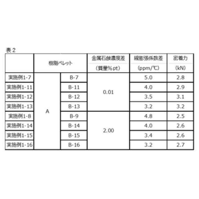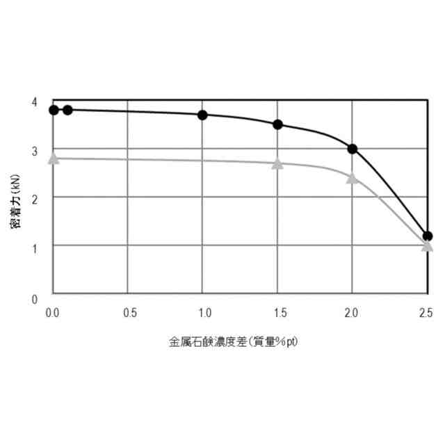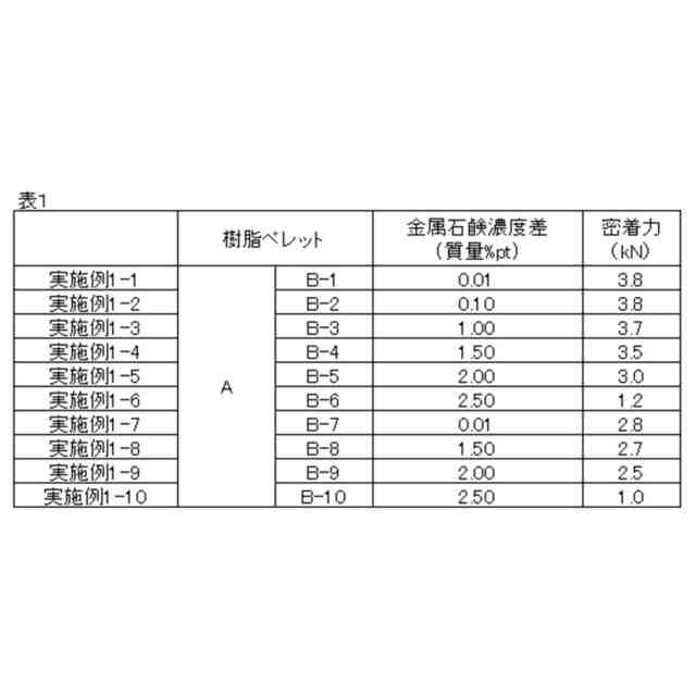 実施例に係る複層樹脂成形体についての金属石鹸濃度差と密着力との関係を示したグラフである。