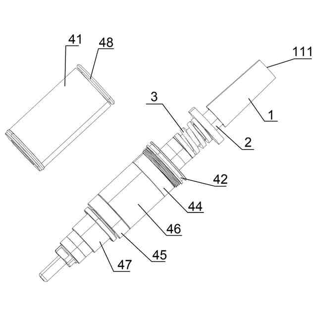 前記軸管が前記接続軸ロッドの一端に嵌着され、前記ばねが前記接続軸ロッドの外側に嵌着され、前記管状グリップが前記軸受アセンブリに挿通され、前記管状グリップの一端が前記接続軸ロッドの他端に固定して接続され、前記管状グリップの他端が軸受アセンブリから延出し、前記軸管の先端に第1接続口(A)が開設され、前記軸管の底端に第2接続口(B)が開設され、前記第1接続口(A)と第2接続口(B)との間に軸孔が開設され、前記第1接続口(A)の内壁にゴムリング(A)が嵌合され、前記第2接続口(B)の内壁にゴムリング(B)が嵌合され、