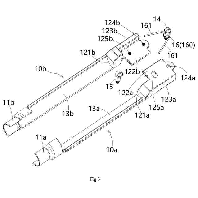 細長制限孔(125a)が、前記第1の水平プレート(122a)に形成され、第2のねじ孔(125b)が、前記第2の水平プレート(122b)に形成され、