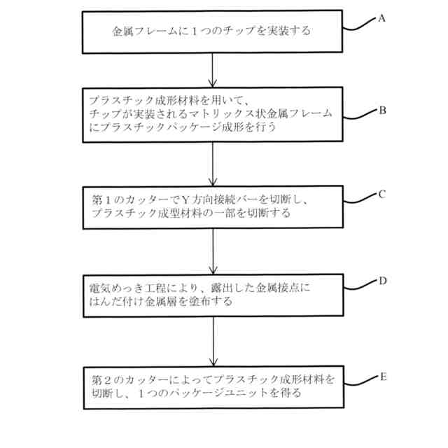 プラスチック成形材料を用いて、チップを実装する金属フレームにプラスチックパッケージ成形を行う。