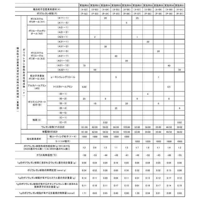 本発明は粒状農業資材コーティング用ポリウレタン樹脂組成物及び複合粒子型農業用資材に関する。