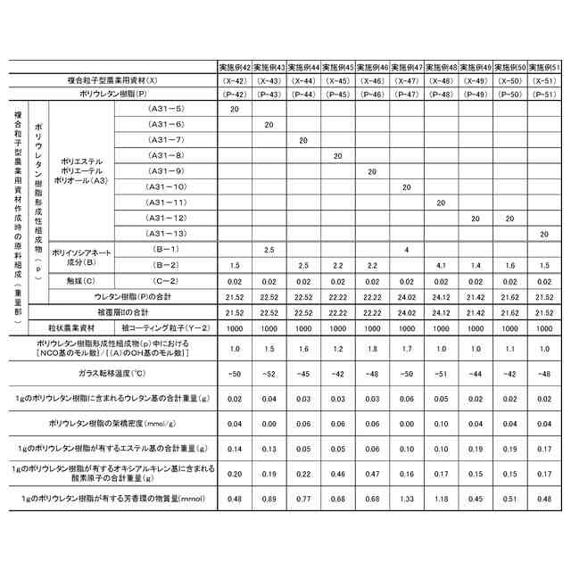 本発明者らは、上記課題を解決すべく鋭意検討した結果、本発明に到達した。即ち本発明は下記の(1)~(3)を満たすポリウレタン樹脂からなる粒状農業資材コーティング用ポリウレタン樹脂、及び粒状農業用資材の表面の少なくとも一部に前記の粒状農業資材コーティング用ポリウレタン樹脂を含む被覆層を有する複合粒子型農業用資材である。
