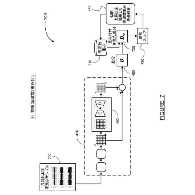 【解決手段】異常検出システム700において、再構成に基づく異常検出モジュール410は、時系列データサンプルに対して短時間フーリエ変換(STFT)を実行し、STFT周波数成分行列に特徴ジッタリングを適用し、特徴ジッタリング後のSTFT行列をエンコーダ/デコーダニューラルネットワーク450に入力し、エンコーダの前にマスキングを適用し、層毎の特徴埋め込みを行う。エンコーダ/デコーダニューラルネットワークの出力は再構成されたSTFT行列であり、このSTFT行列が入力STFT行列から差し引かれて差分行列480を生成し、差分行列から異常スコアを計算する。良好なデータサンプル及び不良なデータサンプルの両方で正確な異常スコアを達成するために、差分行列に適用される周波数重みを最適化する特徴重み付けが採用される。
