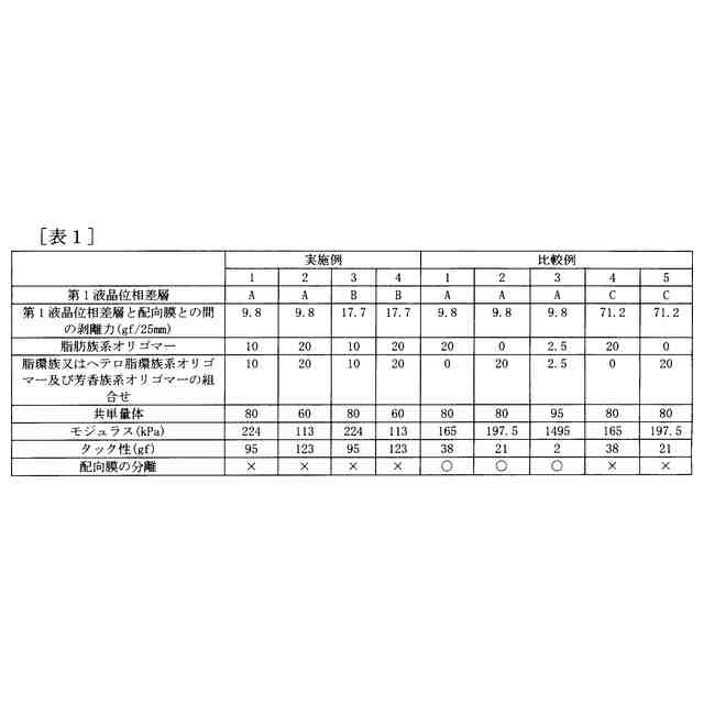 液晶は、波長分散性の特徴により、正波長分散液晶と逆波長分散液晶とに区分される。通常、逆波長分散液晶が正波長分散液晶よりも側面色相改善などの光学特性に優れることが知られている。しかし、逆波長分散液晶層は、ディスコティック液晶(discotic liquid crystal)を用いてリジッド(rigid)な特性を有するので、液晶層と配向膜との間の剥離力が低い特性を有し得る。これにより、偏光板などの光学積層体を製作する場合、層間剥離力を弱化させるという短所がある。