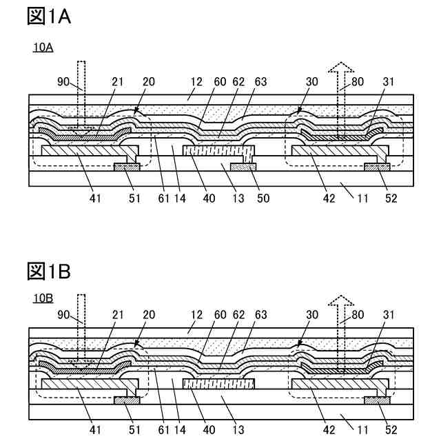 前記受光素子は、第1の画素電極、前記第1の画素電極上の共通層、前記共通層上の活性層、及び、前記活性層上の共通電極を有し、
