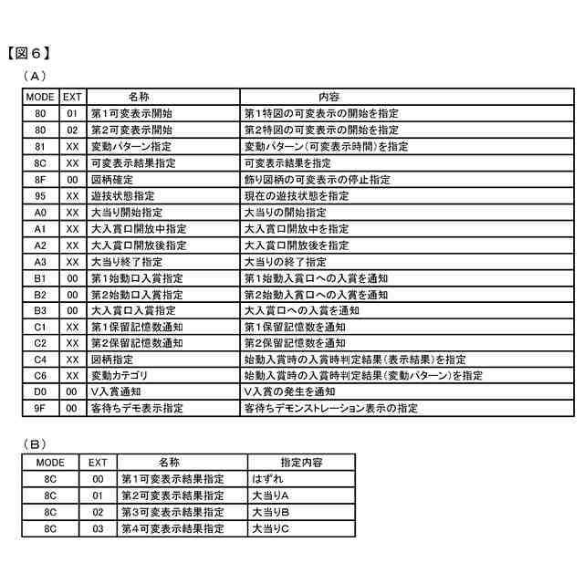 特徴部1のパチンコ遊技機における(A)、(B)は、演出制御コマンドを例示する図である。