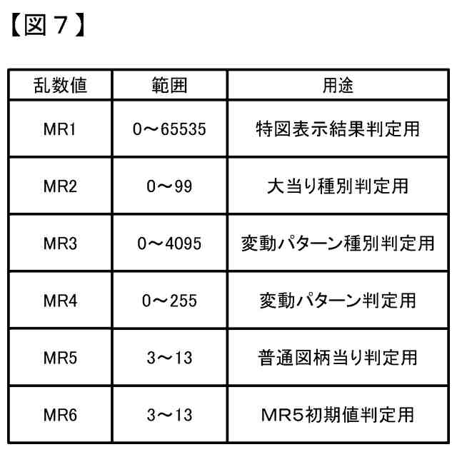 特徴部1のパチンコ遊技機における各乱数を示す説明図である。